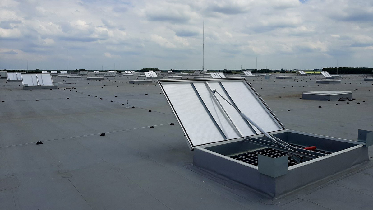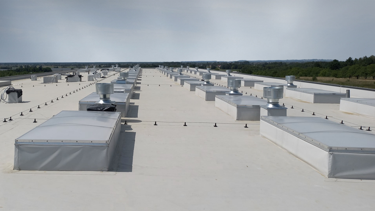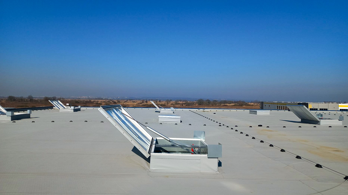 Proiectul a inclus luminatoare fixe cu cupole din policarbonat.